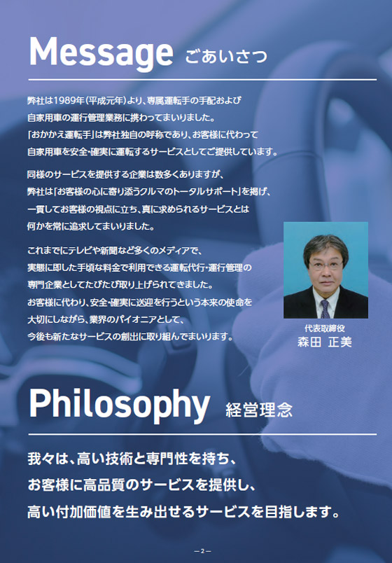 一般車両(個人・法人)の運転代行及び運転管理事業を渋谷区代々木にて「運転代行会」の名称で開業、法人役員車の運転管理を開始。登録ドライバー・運転手をポケットベルで同時に一斉に呼び出しできるシステムを構築し、NHK、日経新聞社党のマスコミに取り上げられる。幼稚園・学校法人なr日に法人企業送迎バス及び貴重品や機密データの取扱いに伴うシャトル便の運行業務開始
